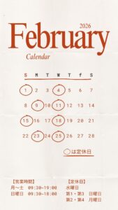 【2月の営業日のお知らせ】