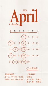 【4月営業日のお知らせ】
