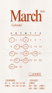 【3月営業日のお知らせ】
